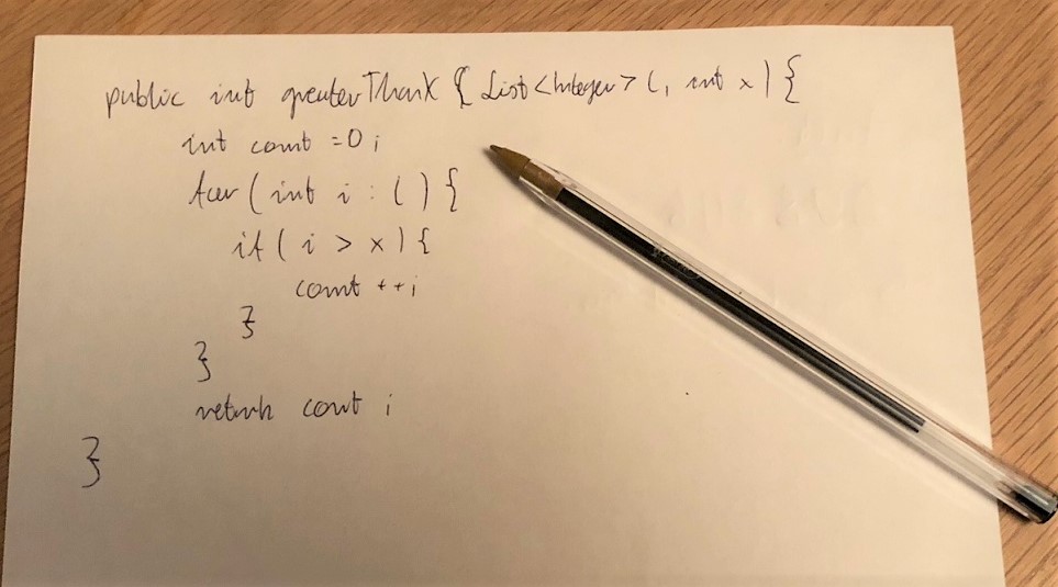 - Try to evaluate how interested a candidate is in learning new technologies relevant to his/her field. Is he/she happy with happy with the way things are are they actively making effort to learn new technologies. Again, encourage them to scratch the paper.